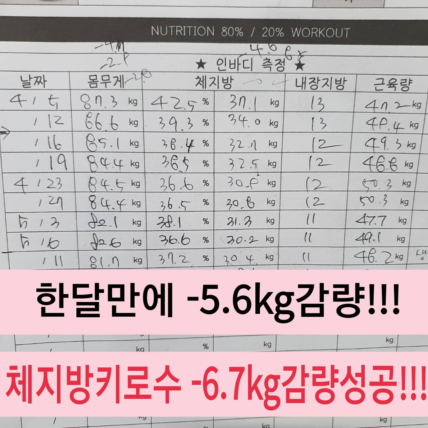 확빠짐에서 총 -12kg감량에 성공!!!